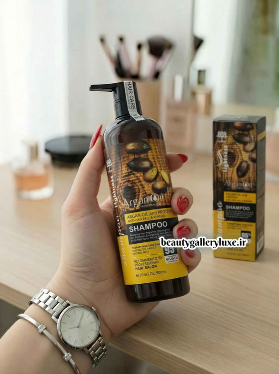 این شامپو حاوی ۹۵ درصد روغن آرگان هست.که مکمل می کنه به ترمیم موهای آسیب دیده 😍