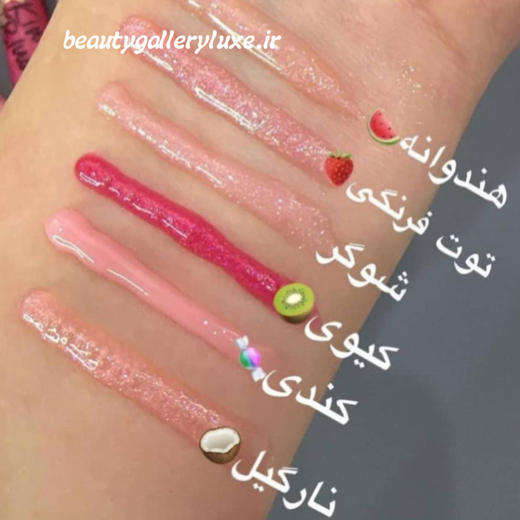 لیپ گلاس ویکتوریا شاین های ریز و جذابی داره (به جز طرح کندی یا آبنبات که ساده هست) که لب ها را حجیم و قلوه ای نشان می ده🤗