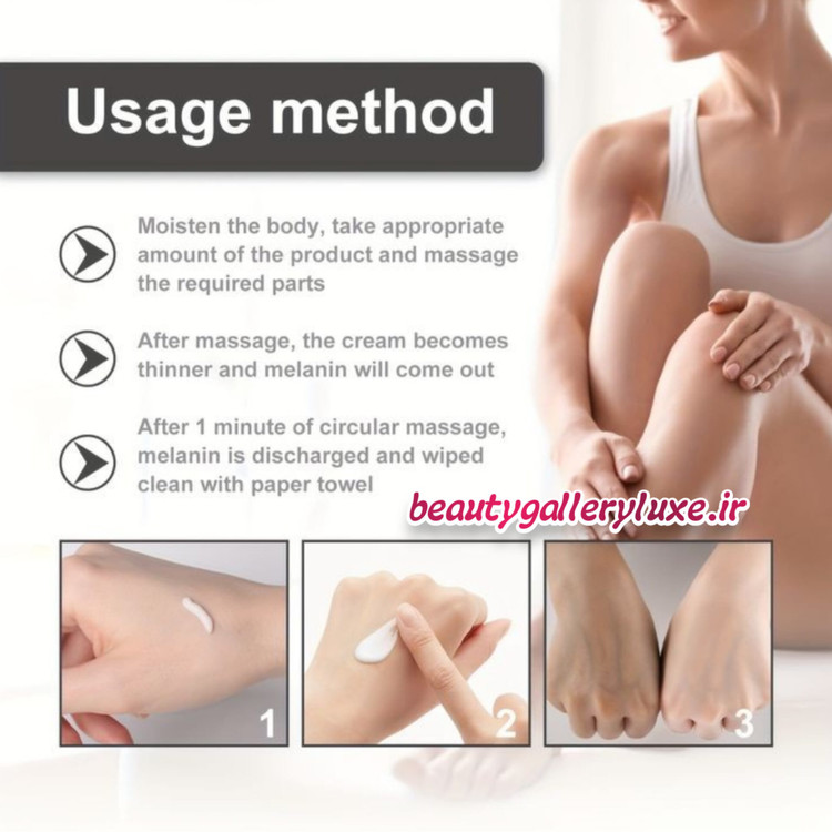 کرم سفید کننده جادوئی و دائمی بدن مویام را می توان برای تمام نقاط بدن مانند زیر بغل، سینه، لب، ناحیه تناسلی، پوست صورت و حتی پشت دست، استفاده کرد🥰